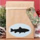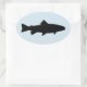 Pegatina ovalado con diseño de silueta de trucha de dos colores.