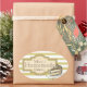 Trozos de tarta en capas en pegatinas marrones claros y de rayas crema, elaboran fantásticas etiquetas personalizados para sus pasteles caseros.