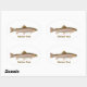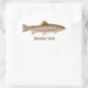 Esta pegatina de trucha arco iris presenta una ilustración de color de estilo vintage. La trucha arco iris es uno de los peces más hermosos de Norteamérica. En el agua dulce, los arcos de lluvia se encuentran en corrientes de montaña frescas.