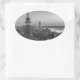Pegatina Ovalada Vista aérea en blanco y negro de la noche de Nueva
