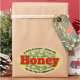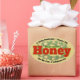 Pegatina de tarro de miel con un ramo de trébol o flores silvestres atadas en una corona, y texto personalizado para el nombre del apicultor o el negocio de los colmenares, información de contacto, peso neto y texto en negrita para la palabra "Miel" (o Miel, Miele o Honig en otros idiomas). Utilice el texto opcional para el tipo de miel, las cualidades del producto (sin filtrar, color ámbar oscuro), el país de origen o productos relacionados como la miel con crema y los dulces de miel. © dotpatrón