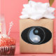 Un símbolo Yin-Yang con la luna en un cielo estrellado y sol sobre las nubes, en camisetas, caramelos, tarjetas, regalos.
