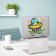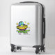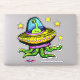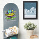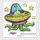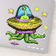 Este pegatina súper lindo alienígena tiene un extraterrestre verde sonriente feliz mirando desde un hufo mientras flota a través de las estrellas, en el espacio exterior. Los tentáculos salían del platillo volador. Este arte original se dibujó a mano con bolígrafo de gel, y luego se coloreó digitalmente.