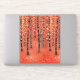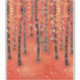 Un moderno cuadro paisajístico de un bosque de abedules o álamos en otoño en ricos tonos rojos, naranjas y amarillos.