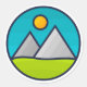 Pegatina de viajes en ilustracion paisajístico de las montañas. Para los amantes de la naturaleza.