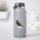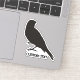Sentado pájaro canario mira hacia atrás. Pegatina con texto personalizado.