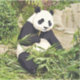An illustration from a photograph of a panda eating bamboo printed on a sticker.