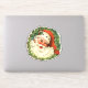 Pegatina de tortuga con una imagen retro que muestra a un feliz y sonriente Santa Claus rodeado de una corona de pino con un sorbo de hueso en su gorra.