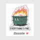 Esta divertida pegatina presenta un contenedor de basura en llamas con la frase irónica "Todo está bien". Perfecta para cualquiera que ame el humor oscuro y los memes identificables. Esta pegatina de vinilo duradera es ideal para portátiles, botellas de agua y más. Abraza el caos y haz saber a todos que estás afrontando... más o menos.