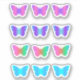 Un conjunto de mariposas degradadas en colores rosa, púrpura, azul y verde. Ideal para pegarse en regalos, tarjetas, sobres e incluso para hacer o recortar reserva.
