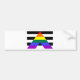 El arco iris de V representa la A en el activismo de la palabra, y los colores del arco iris representan la bandera del orgullo gay. Las rayas blancos y negros representan heterosexualidad.