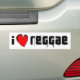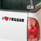 "ME ENCANTA REGGAE" Pegatina parachoques. Resumen/Corazón Rojo Grunge. "Me encanta el reggae" texto Grunge/Splatter en negro. Fondo blanco. Declaración audaz asociada con la música reggae y la cultura reggae.