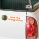 Esta pegatina para el parachoques ofrece la foto del artista de un varón joven que disfruta del balanceo de un árbol en la selva tropical de Borneo. El artista es un voluntario con OFI y dona 100% de los beneficios de este artículo al International de la fundación del orangután. (www.orangutan.org)