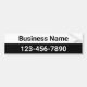 This business bumper sticker has display text you can edit to show your business name and phone number. The top is white with black text for the company name. The bottom is black with white digits for your phone number. All text can be edited or deleted.