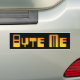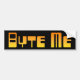 Etiqueta del parachoques negro con "Byte Me" en letras de tecnología naranja.