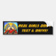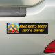 ¡Oh, nena! ¡Esta chica tiene su propio juego de ruedas y está lista para irse! Guay Bumper Sticker con IconDoEs la pintura digital original de un chica al volante de un pequeño auto deportivo rojo con banderas cruzadas a cuadros enarbolando en la brisa detrás. El campo de texto de personalizable predeterminado es "Chicas reales no envían mensajes de texto ni manejan". Manténgase como está o cámbielo a su propio pie de foto. Un regalo perfecto para acompañar el primer auto de su hija o como parte de una promesa para graduados de la Escuela de Conductores.
