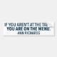 Si no estás en la mesa, estás en el menú - Ann Richards, demócrata gobernadora de Texas. fiesta democrático de Guay Texan pegatina de parachoques de autos para alguien que trabaja en las urnas y votará azul en las elecciones.