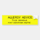 Consejo de la alergia - este vehículo puede contener nueces. Coche que contiene nueces. Señal de peligro.