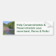Bumper Sticker con la frase "¡Ayuden a los conservacionistas y conservacionistas a salvar más tierra, granjas y parques! con la foto de un arroyo y un árbol y montañas rosados.