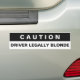 "PRECAUCIÓN - Conductor legalmente rubio".
