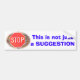 Muchas vidas se pierden o quedan heridas debido a la ejecución de los Rótulos Stop. Parece que la creencia es que, si no parece que se acerque ningún otro tráfico, entonces no hay necesidad de parar. Detener las señales en todo momento creará el hábito -y además, es la ley. Para los que comparten esta creencia, ¡esta es una pegatina para ustedes!