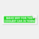 Un letrero vibrante verde y blanco que muestra un mensaje animado que promueve un concepto emocionante de exhibir vehículos impresionantes y entusiasmo por los automóviles.