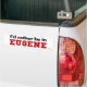 ¡Estaría bastante en Eugene! ¿Es usted de Eugene, Oregon? ¿Usted tiene un amigo o un miembro de la familia que amen a Eugene, Oregon? Si es así esto "estaría bastante en…" ¡la pegatina para el parachoques es lo que usted está buscando! Las características del diseño "estaría bastante en" en pequeñas letras negras en el top y el "Eugene" en letras rojas grandes en la parte inferior.