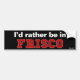 ¡Estaría bastante en Frisco! ¿Es usted de San Francisco, California? ¿Usted tiene un amigo o un miembro de la familia que amen San Francisco, California? Si es así esto "estaría bastante en…" ¡la pegatina para el parachoques es lo que usted está buscando! Las características del diseño "estaría bastante en" en pequeñas letras blancas en el top y el "Frisco" en letras rojas grandes en la parte inferior.