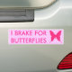 Realmente frené por mariposas. Un día iba conduciendo por California a lo largo de la ruta de migración por unas hermosas mariposas, y todo lo que tenía que hacer era lento durante unos tres kilómetros mientras volaban por ahí. Aunque la mayoría de la gente no haría eso, y probablemente había miles de mariposas muertas a lo largo de la carretera. ¡Muestre su amabilidad con esta pegatina de parachoques rosa de bonito!