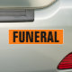 Etiqueta del parachoques Naranja con la palabra "funeral" en negro.