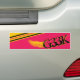 Ahora tengo 2 pegatinas que no puedo utilizar en mi coche. Bueno, una de ellas toda arrugada de intentar pegarla en la carrocería. Buena impresión. Es igual a las fotos.
