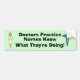 Esta pegatina para el parachoques muestra que una imagen de un caduceo y de una enfermera de mirada severa y al lado de ella es el comentario "médicos que las enfermeras de la práctica sabe lo que él está haciendo."