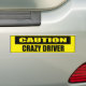 Una extraña pegatina de parachoques con el texto "Caution Crazy Driver".