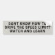 Pegatina Para Coche Leasons del límite de velocidad. Mire y aprenda