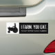 Esta es una audaz pegatina en blanco y negro a favor de la agricultura de mensajes para cualquiera que produzca comida para las masas y ocasionalmente retiene el tráfico con sus tractores agrícolas y otros equipos en movimiento lento. Una pequeña imagen gráfica de un granjero conduciendo un tractor con texto sucio y fácil de leer recuerda a los viajeros impacientes que son la razón por la que comen, con un pedido de apoyo para los granjeros locales.