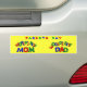 Esta pegatina del parachoques fue diseñada para celebrar el "Día de los Padres". Rojo, azul y verde son los colores utilizados para diseñar "Mejor Mamá del Mundo" y "Mejor Papá del Mundo" y "Día de los Padres". Todo esto se hace sobre un fondo amarillo para una visualización fácil.