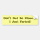 Pegatina Para Coche No consiga así que cercano….¡Acabo de Farted!