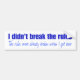 ¡Deje el mundo saber que no es su falta que las reglas estaban quebradas! Me lee "no rompió las reglas. Las reglas estaban ya quebradas cuando conseguí aquí." ¡Tenga su excusa lista para ellas!