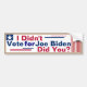Pegatina Para Coche No voté por Joe Biden... ¿Lo Hiciste?