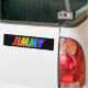 Este diseño multicolor y divertido de pegatinas de parachoques presenta el nombre común "JIMMY" con las letras que tienen un colorido espectro arcoiris como el patrón de coloreado gradiente. El fondo es negro de color. Una pegatina de parachoques como esta puede ser un regalo divertido para darle a alguien llamado Jimmy. [~Z0000343]