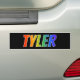 Este diseño multicolor y divertido de pegatinas de parachoques presenta el nombre común "TYLER" con las letras que tienen un espectro de colores arcoiris como el patrón de coloreado gradiente. El fondo es negro de color. Una pegatina de parachoques como esta puede ser un regalo divertido para darle a alguien que se llama Tyler. [~Z0000343]