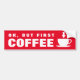 Ok, but first coffee very funny quote car Bumper Sticker. Fun Birthday gift idea for coffee lover, cafe owner, barista, friends, family, coworker, boss, caffeine junkie etc. Red and white sticker with cup silhouette. Coffee humor design for truck or car.