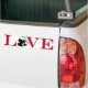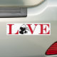 Un divertido bumpersticker para los amantes del panda con la palabra amor en letras rojas de gran bloque y una silueta de un panda que come bambú reemplazando a la O.