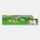 Ilustracion de tres marrones y vacas blancas que pastan en un campo verde con vistas a prados y a campo en la distancia. Imagen disponible en los diversos regalos y productos.