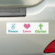 Azul, rosa y verde sobre blanco. Paz, amor, Cristo con símbolos.
