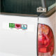 Ahora tengo 2 pegatinas que no puedo utilizar en mi coche. Bueno, una de ellas toda arrugada de intentar pegarla en la carrocería. Buena impresión. Es igual a las fotos.