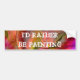 Pegatina de parachoques con el texto "Prefiero estar pintando" y un diseño colorido y vívido debajo de las letras blancas.