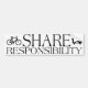Gráficos de una bicicleta y de un coche con el texto "RESPONSABILIDAD de la PARTE". La idea es que no es apenas el motorista que necesita actuar legalmente y con seguridad.