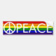 Una pegatina de parachoques de arco iris con una señal de paz y la palabra Paz a través de ella.