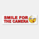 Una pegatina para el parachoques divertida del coche. Sonrisa para la cámara. Con una cara amarilla del dibujo animado.